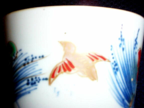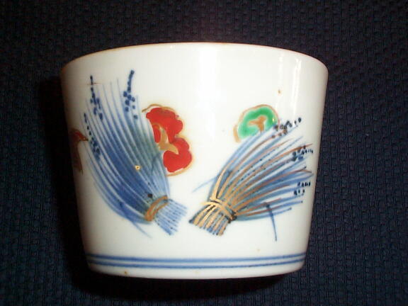 NO.40002 伊万里色絵 稲束・すずめ文猪口(5客)