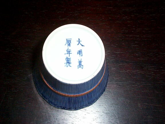 NO.40009 伊万里染付 藍柿右衛門 芝垣文輪花猪口(1客)