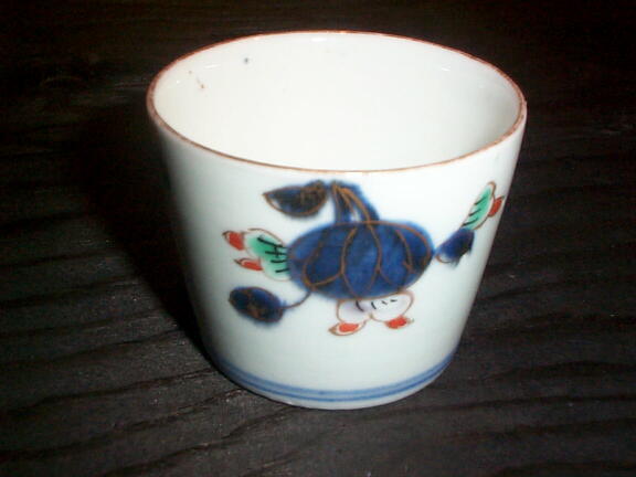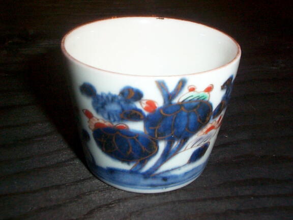 NO.40014 伊万里色絵 葵文のぞき猪口(1客)