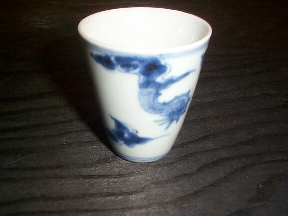 NO.40016 伊万里染付 龍文長細のぞき猪口(1客)