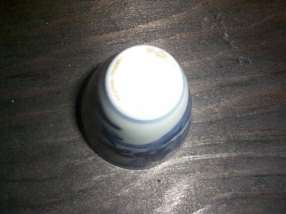 幕末頃ののぞき猪口。長細い形をした大変珍しいものです。 残念ながら口縁に目立たない貫入がありますので、格安にてご提供いたします。