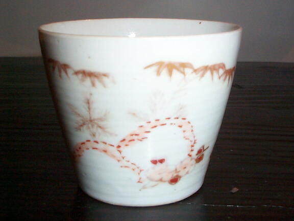 NO.40020 伊万里色絵 笹雪輪草花文猪口(1客)