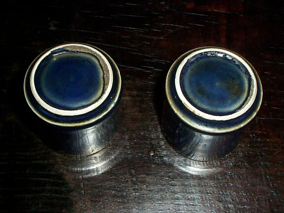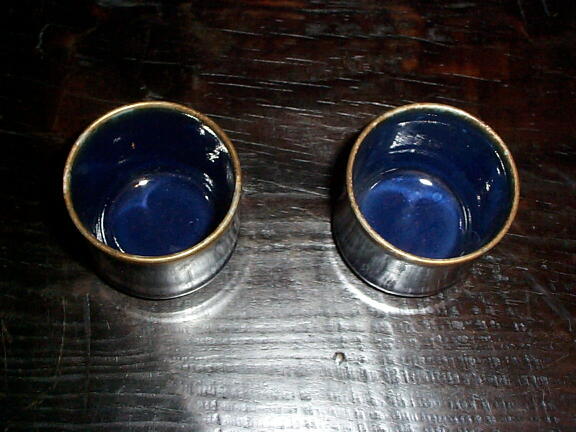 江戸後期、天保かもう少し古い時代の瑠璃釉ののぞき猪口です。金彩は通常用いられる水金ではなく、金泥を用いています。金彩の薄れも少なく、状態良好。高台内側にひっつきがありますが、問題にするような瑕はございません。ご希望の数量でどうぞ。
