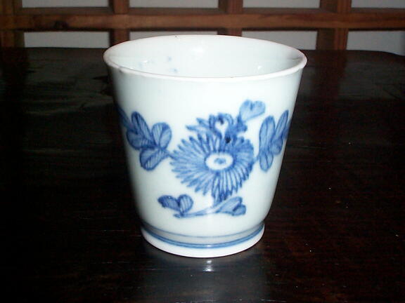 NO.40029 伊万里染付 菊文のぞき猪口(1客)器形も文様も珍しいです!