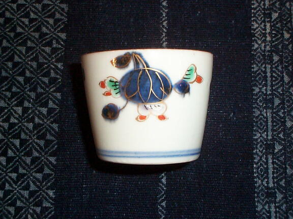 NO.40038 伊万里色絵 葵菊文のぞき猪口(1客)
