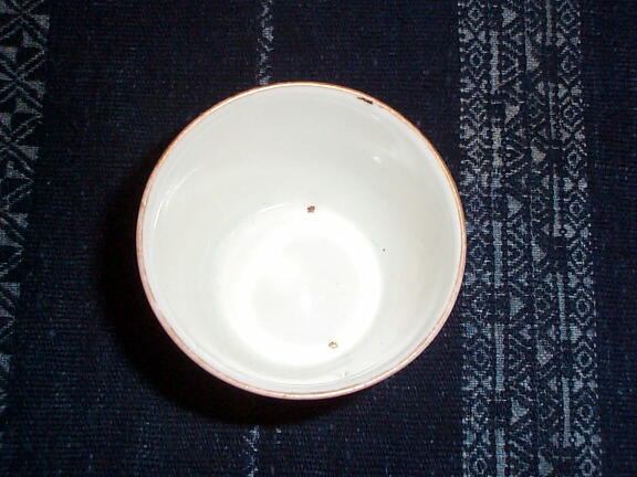 江戸後期の作品。 葵と菊文様の染付けに絵の具と金彩でかわいらしく絵付けがされています。 口縁金彩に薄れがありますが、側面の色絵金彩は よくのこっています。 見込みと口縁に降り物がありますが気にならない程度です。