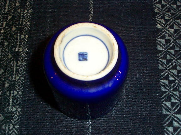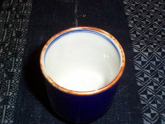 明治の印判。 シンプルなベロ藍ののぞき猪口です。 厚手で手に取るとずっしりとした感触です。 大振りでぐい呑みに使いやすいサイズ。 写真は実物よりも明るい色味で、実物はベロ藍らしい濃い発色です。 口縁に薄れがありますが、瑕はありません。