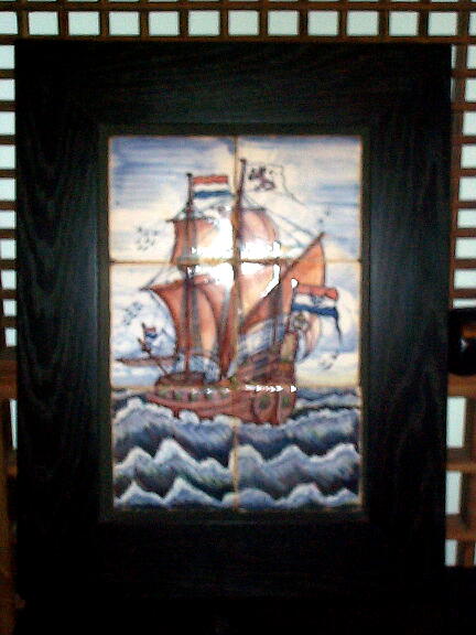 NO.80028 デルフト 東インド会社 帆船画のタイル 額装付き