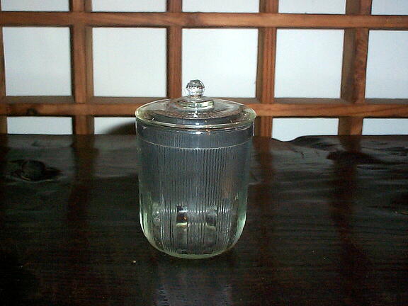 蓋付きの湯呑み茶碗で、かなり厚手に出来ています。 細かく縦縞が入っていて持ち易くしています。 写真は実物よりもうっすらグリーンがかっています。 実物はもう少し落ち着いた色味です。 小物入れにも使えそうですね。