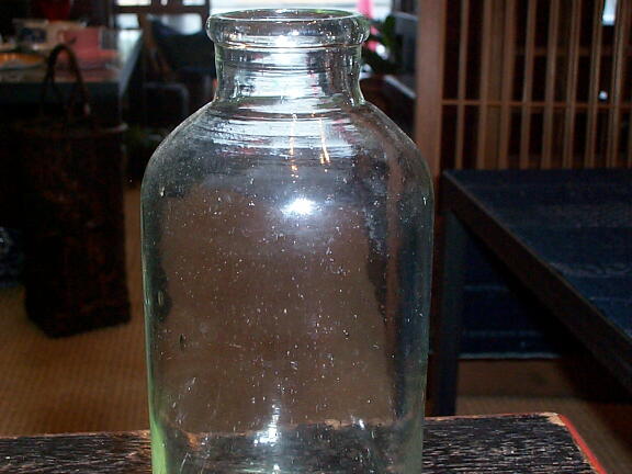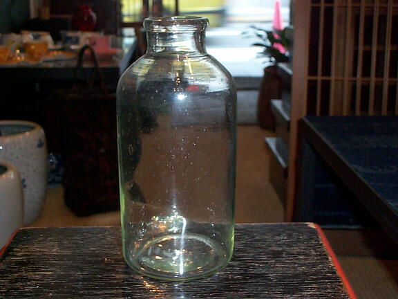 時代は不明ですが、古い硝子の特徴である気泡が多くあります。 気泡が破れた跡がありますが、 無傷です。 朱色は光線が写り込んでいるものです。 花瓶代りにいかがでしょうか?