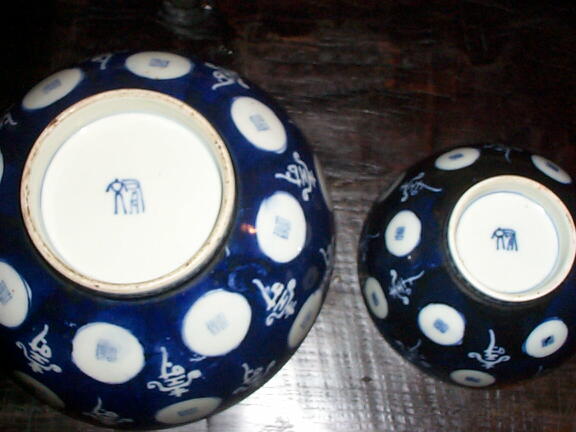 NO.70008 伊万里染付 白抜き壽福丸紋重ね鉢 (大)(小)