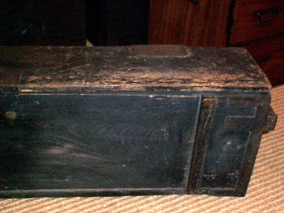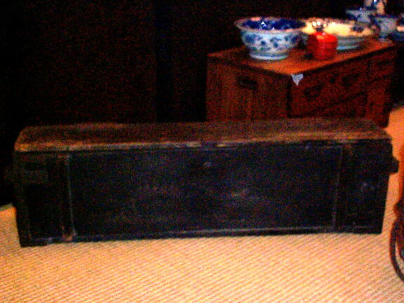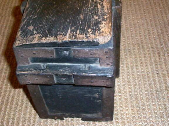 江戸時代。火縄銃の弾薬を入れた箱です。 火縄銃入れの箱と一緒に持ち運び易いように、重ねたり、寝かせたりできるようになっています。 飾り台や、ガーデニングなどに活用できそうです。 古いものなので、鉄枠が錆びて朽ちていたり、傷や修復跡がありますが、使用するには支障がありません。 箱の外側 横90cm、奥行19cm、高さ25cm。 箱の内側、横80.7cm、幅10.9〜11.7cm、高さ20.5cm。 宅配便でお送りできます。