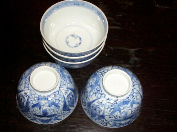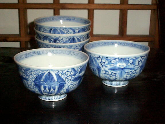 NO.10010 伊万里染付 線描き飯茶碗 蓋無し(5客)