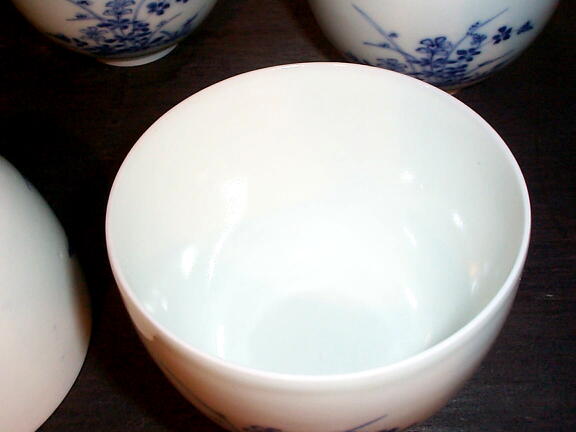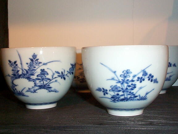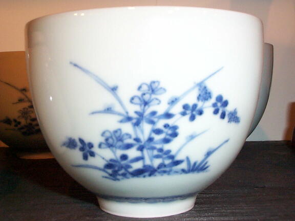 江戸中期。たっぷりとした器形。前後に2種類の秋草文が繊細な筆使いで描かれていて、清楚で趣のある品です。完品。5客揃いでお願いいたします。