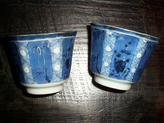 江戸後期の作品。 墨弾きの技法で竹、梅文が繊細に描かれています。 向付としてはかなり小ぶりで、ぐい呑み、猪口として使えそうな大きさです。 完品。5客揃いでお願いいたします。