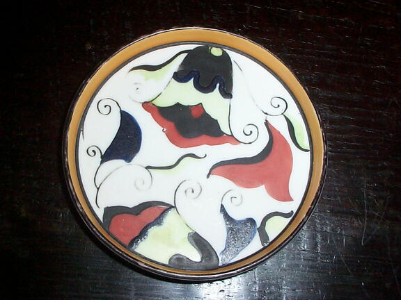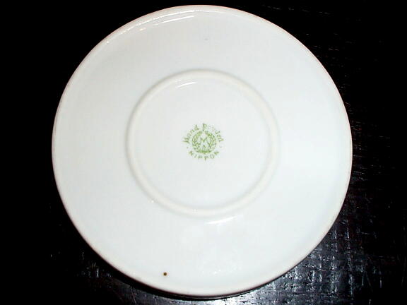 1910s前後のグリーンマーク、人気の'NIPPON'時代、アールデコ調の品です。 艶を押さえたマット仕上げは珍しいとおもいます。黒い弦の模様や縁に若干の時代相応の色落ちがあります。コースターだけでなく、小皿としてもおすすめです。