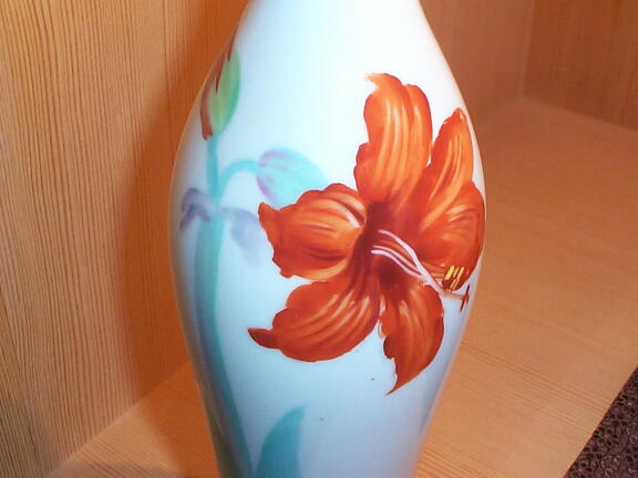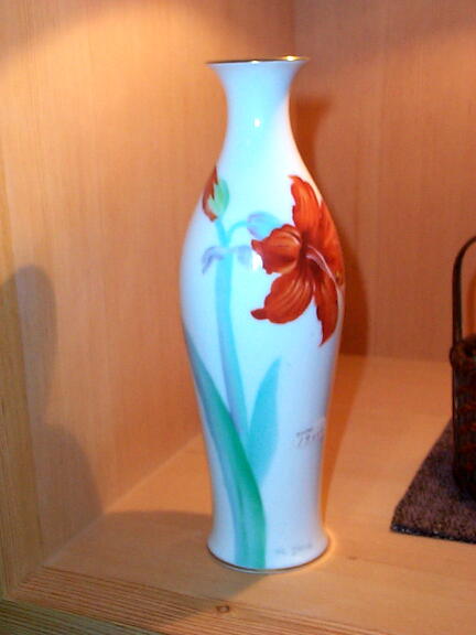 NO.N0013 オールド ノリタケ 赤い百合の花模様 作者のサイン入り花瓶