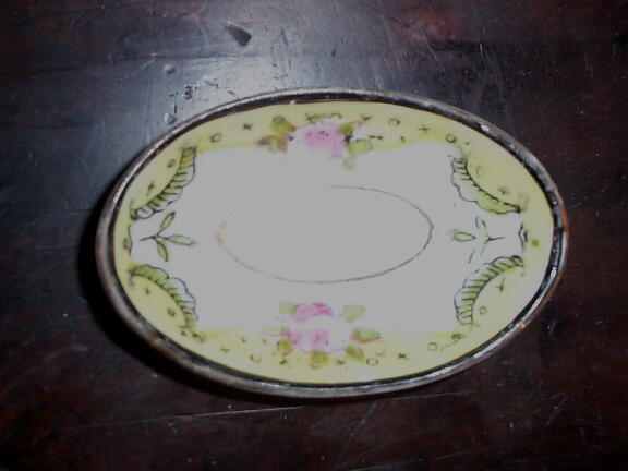 愛らしい薔薇模様をあしらったソルトディッシュです。スプーンや角砂糖を乗せたり、箸置きに使っても良いですね。縁取りに薄れがありますが、状態良好です。裏のスタンプは緑のNoritake MマークHandpainted、Japan、1918年以降に用いられたものです。