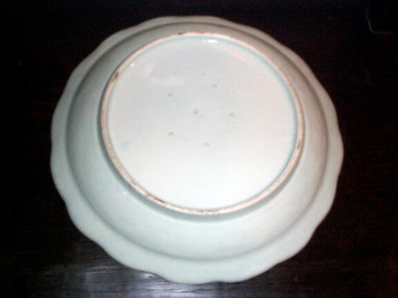 江戸後期の作品です。 モダンでお洒落な模様で、和洋どちらでもマッチしそうです。 見込みに小さな降り物がありますが、スレも少なく、問題にするような瑕はありません。 オレンジ色の部分は光線が写りこんでいるものです。