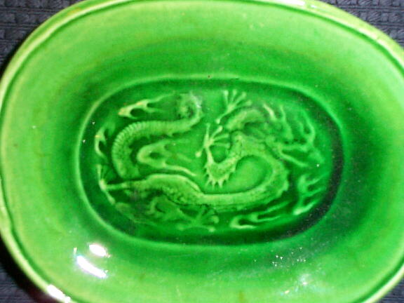 緑色の龍文様が5本爪、陽刻のものは最も上手だといわれています。