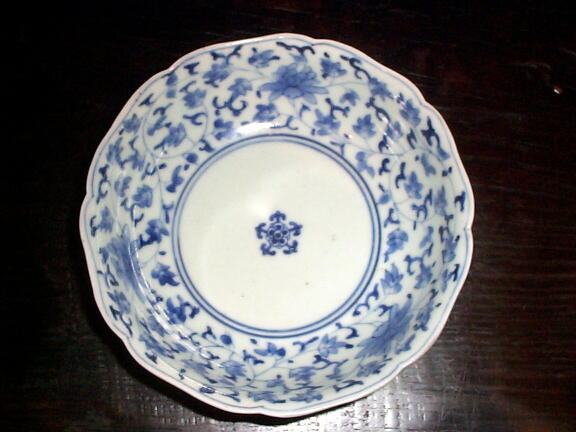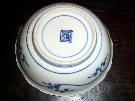 見込五弁花、裏には角福、花唐草の図柄がキリットした上手の品です。