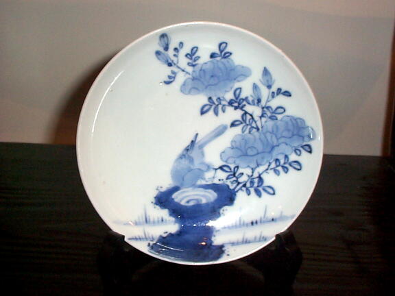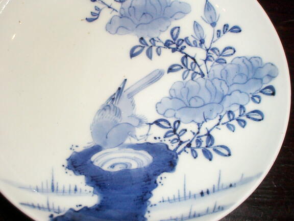 NO.30034 伊万里染付 岩牡丹鳥文皿(1客)柴田コレクションW#447