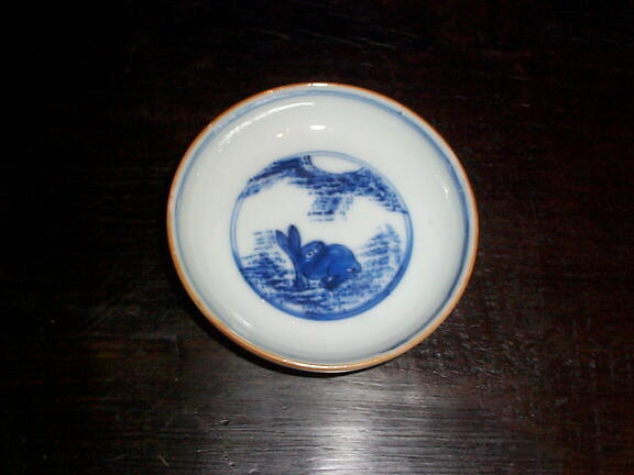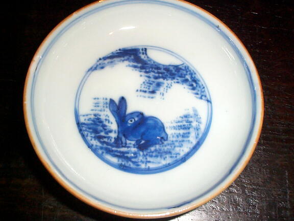 飯茶碗の蓋ですが、見込みの兎文がかわいらしく、染付の上がりも良く、 小皿として充分に使えます。問題にするような瑕はありません。時代は幕末以降と思われます。