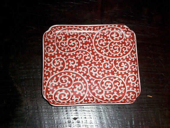 NO.30038 印判 赤い逆蛸唐草文小角皿(5客)