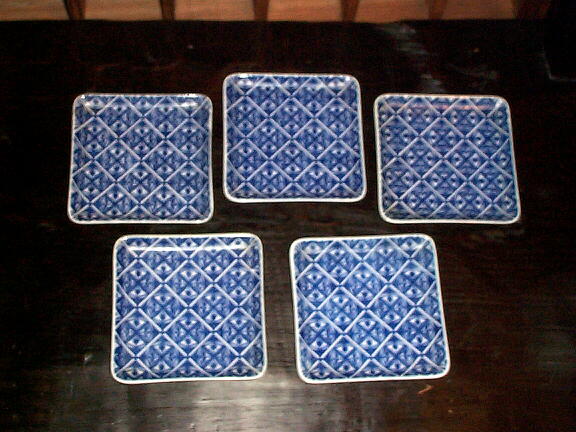 NO.30039 印判 七宝つなぎ文角皿(5客)香蘭社