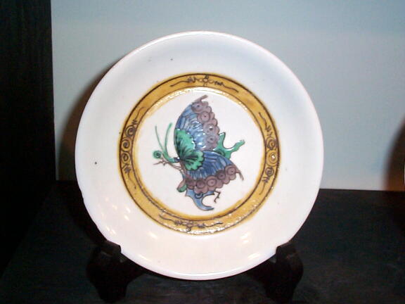 NO.30043 伊万里色絵 蝶文5寸皿(1客) 初期赤絵