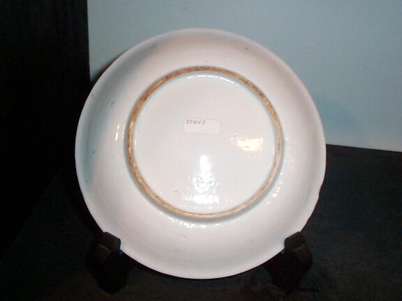 寛文時代、古九谷の後期から柿右衛門に移行する時期の色絵皿です。 この時代の色絵を「初期赤絵(色絵)」と呼ぶこともあります。見込み内側の円形状の 黄色い部分は釉薬を剥いで絵付けをしていますが、「初期赤絵(色絵)」に良く見られる技法です。 また柿右衛門の「濁し手」をおもわせるような真っ白な磁器の色も特徴です。 口縁に小さな土切れ(窯キズ)がありますが、問題にするような瑕はありません。