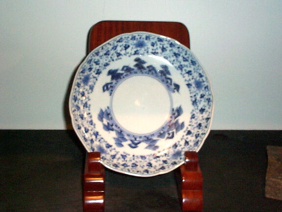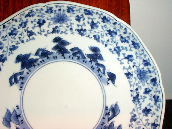 NO.30045 伊万里染付 花唐草松原文輪花7寸皿(1客)