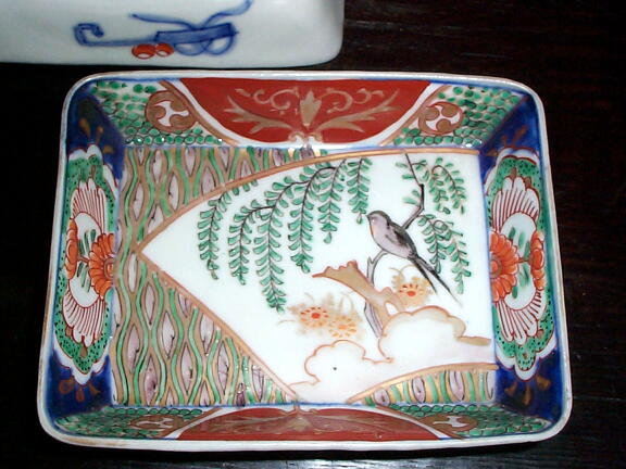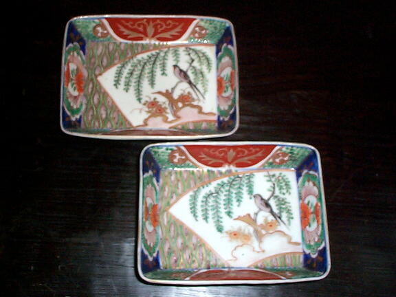 NO.30047 色絵 柳に鳥文角皿(2客)大聖寺