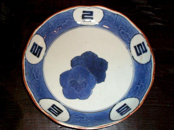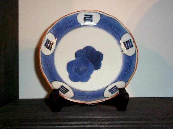 NO.30052 伊万里染付 桔梗花重陽刻雲文輪花皿(1客)