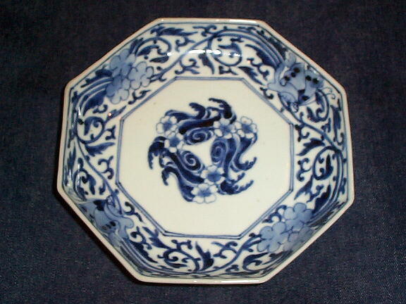 桜と蝶が大胆に描かれています。伊万里で桜文様は極めて希少です。八角皿は