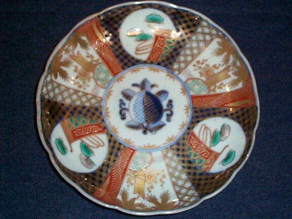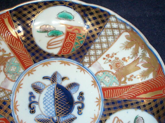 見込みに桃、菱割窓絵に松竹梅文、裏面は宝尽くし文。 お正月に良く合う色絵皿です。 八寸皿は1枚あると大変重宝します。 色の薄れもなく状態良好。問題にするような瑕はありません。