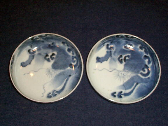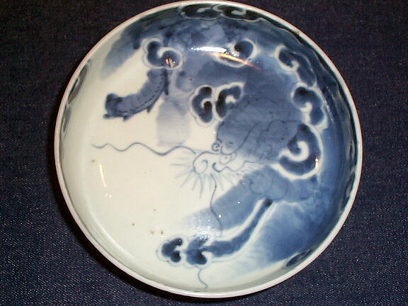 清朝風意匠の雲龍文が力強く描かれていて1枚で見ても存在感があります。 裏銘は昆虫文。見込み、口縁に降り物、釉剥げがありますが、問題にするような瑕はありません。