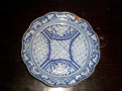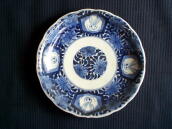 NO.30035 伊万里染付 輪花白抜牡丹幾何学文皿(1客)金直し跡あり ¥8,500(YAHOO!オークション御落札価格)※送料お客様負担 金直し跡あり SOLD OUT 江戸後期、幅19cm、高さ3cm |
