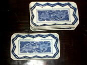 NO.30019 伊万里染付 牡丹文長皿(5客) 5客\150,000 ※送料当店負担 貫入・ホツなし SOLD OUT 宝暦、明和頃 横21.3cm、縦11.7cm、高さ3.6cm |