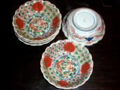 NO.30023 伊万里色絵 輪花7寸皿(5客) 5客\120,000 ※送料当店負担 完品 SOLD OUT 江戸後期(文化文政頃)、径21cm、高さ3.4cm |