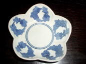 NO.30031 伊万里染付 型紙摺り五方草花文桔梗形皿(1客) \65,000 ※送料当店負担 完品 SOLD OUT 江戸中期(元禄頃)、幅10.8cm、高さ3.5cm |