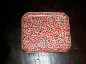 NO.30038 印判 赤い逆蛸唐草文小角皿(1客) ¥9,750(YAHOO!オークション御落札価格)※送料お客様負担 完品 SOLD OUT 明治頃、横幅10.5cm、縦幅9.1cm、高さ1cm |