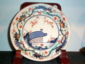 NO.30061 伊万里色絵 桃松竹梅文皿(1客) \18,000※送料お客様負担 瑕無し 明治期 径24cm、高さ4.4cm |