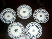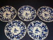 NO.30058 伊万里染付 櫛型みじん文皿(5客) 5客\35,000※送料お客様負担 瑕無し 江戸後期(19C) 径15cm、高さ3cm |