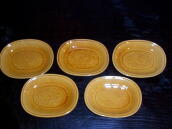 NO.30036 織部 小角皿(5客)共箱 ¥23,000(YAHOO!オークション御落札価格)※送料お客様負担 状態良好 SOLD OUT 明治以前、横幅7cm、縦幅6.5cm 高さ1.8cm |