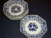 NO.30056 伊万里染付 藍柿右衛門 桜蝶文八角皿(5客) 5客\190,000※送料当店負担 瑕無し 江戸中期(17C) 縦横18.2cm、高さ3.5cm |