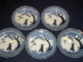 NO.30057 伊万里染付 樹下人物文輪花皿(5客) 5客\75,000※送料お客様負担 瑕無し 江戸後期(19C) 径17.3cm、高さ3.5cm |